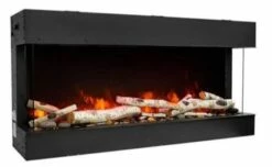 The Slim model comes standard with a 10 piece log set and Charcoal grey fire glass, vermiculite, black fire glass plus a remote.