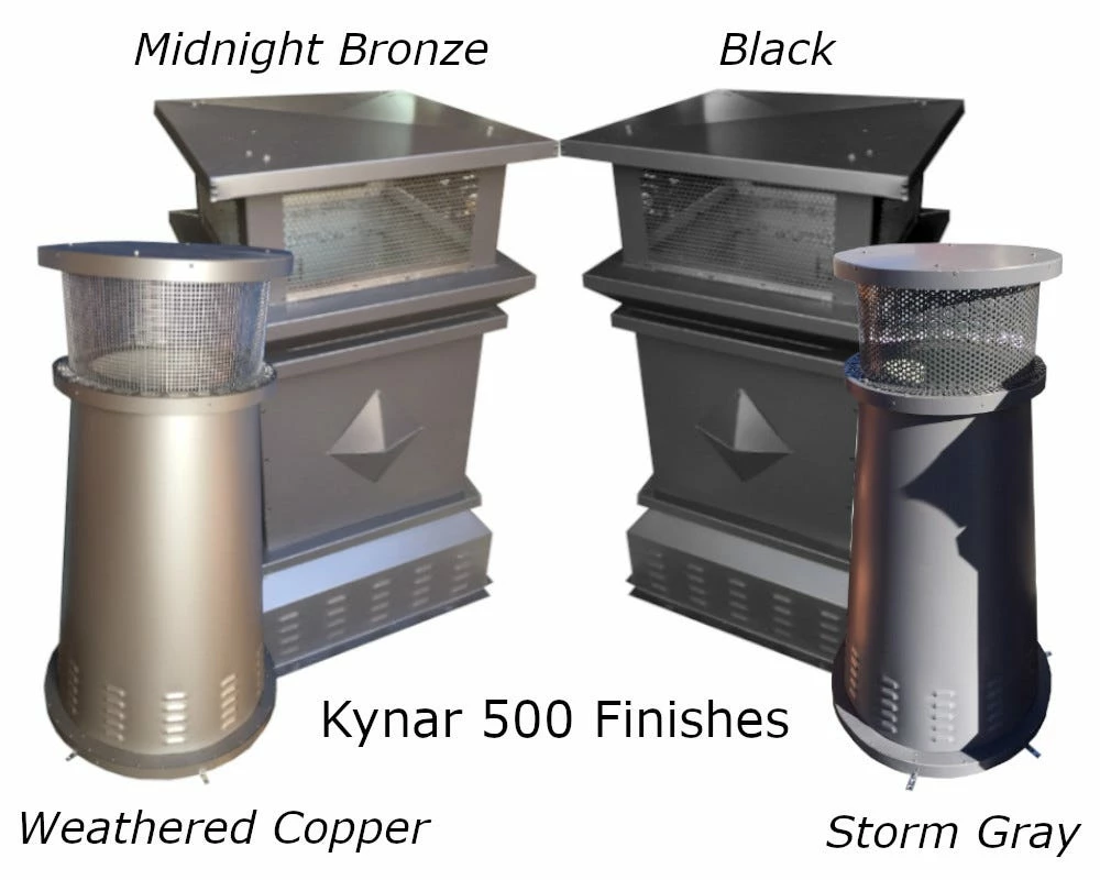 Your chimney is the pinnacle of your home. Your eyes naturally gravitate up towards it. Why not add style and performance to your chimney with a stylish chimney pot. Available in 16oz. copper, 24 Gauge 304 stainless steel, 24 Gauge Kynar 500® coated steel in black and bronze, as well as 24 Gauge Paint Grip steel that is ready to be painted with the high heat paint of your choice. Multiple styles are available to match your home. Multiple sizes are available as well with most models. Though typically built for a brick/masonry chimney, a convenient adapter is available to work with a metal chimney pipe. Metal chimney pots do not have a specific listing or certification with every chimney brand. A stainless steel sleeve and venting is added to the base to assure proper venting and cooling of the pipe. When used with a metal pipe, the construction meets or exceeds chimney cap standards. If don’t see what you are looking for please call, chat, or email in with any questions. Our shop can modify dimensions and even offer additional color coated finishes.