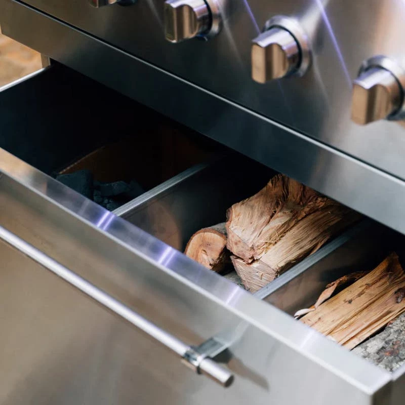 With the Hybrid Encore Grill, get the flexibility of a multi-fuel chameleon with the raw power of a champion that outclasses any of its single-fuel challengers. The Hybrid Encore Grill has a creative Multi-Fuel Tray System, grilling with any combination of solid fuels places innovation in the chef’s hands. It offers a robust 110,000 BTUs of grilling horsepower, take advantage of the convenience of gas or simply use it to ignite those solid fuels in seconds. The Encore Grill is the top performer in any class.