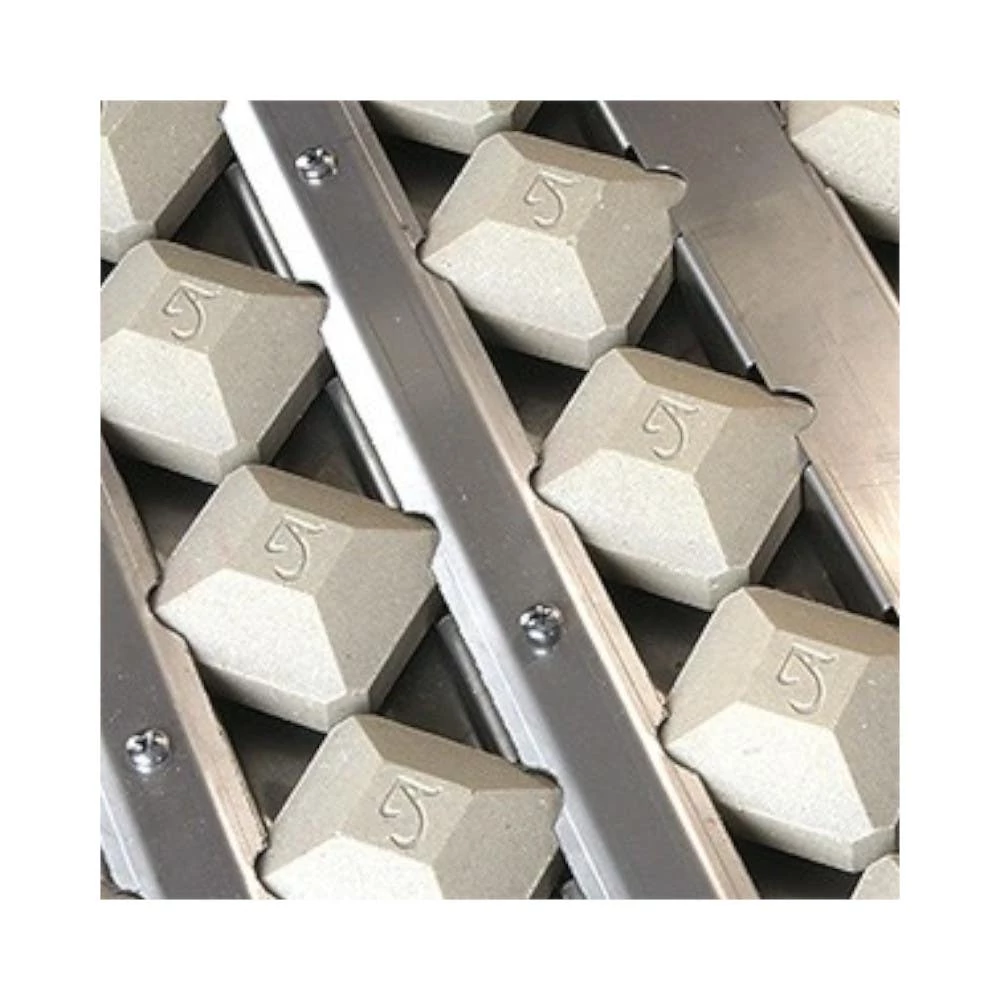 - 1/2-inch thick ceramic briquettes evenly distribute heat for uniform cooking