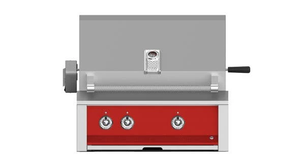 The Aspire by Hestan built-in grill with rotisserie adds even more culinary versatility to Aspire’s heavy-duty performance with an additional under-hood searing burner and stainless steel rotisserie. Each unit is built in California from heavy-duty American steel. More incomparable features include spring-assisted hood, variable infrared searing burner, dual halogen lighting and flip-to-clean ceramic briquettes.
