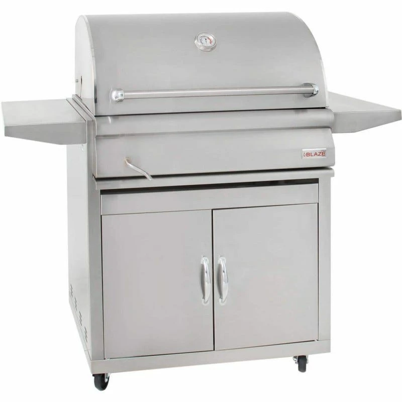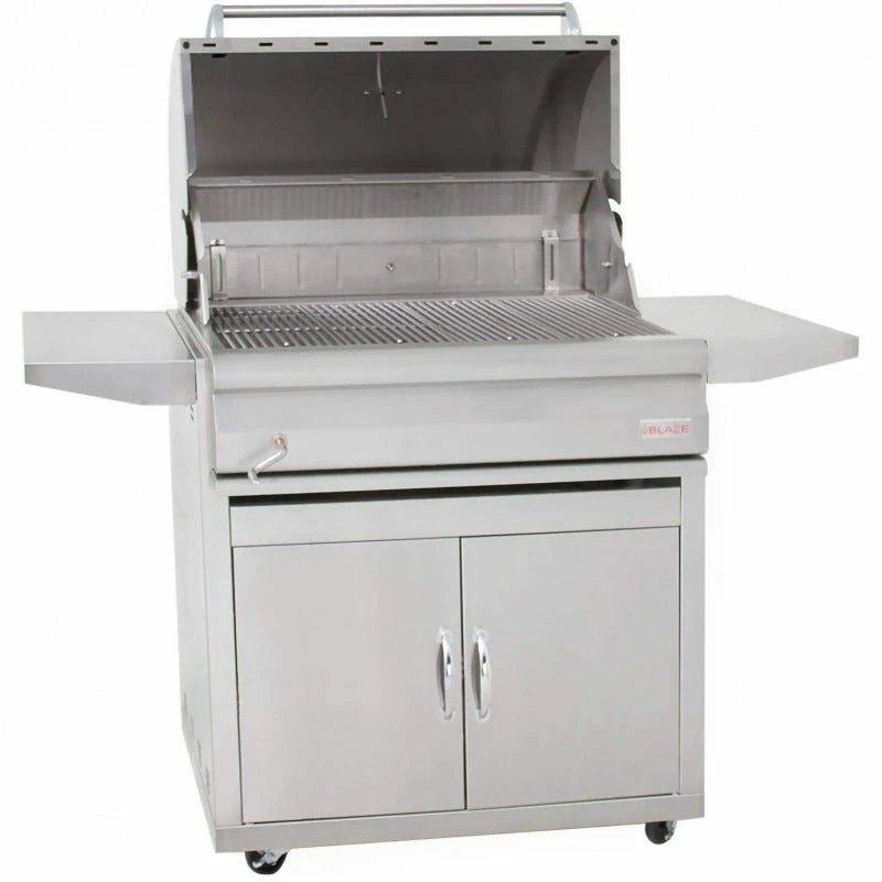 The Blaze stainless steel grill cart is specifically designed to house the Blaze 32-Inch gas and charcoal grills. The stainless steel construction ensures long-lasting durability for years of outdoor use and the four heavy duty caster wheels allow you to easily relocate the grill whenever necessary. The two stainless steel side shelves keep your BBQ tools at hand and provide a convenient work area while you cook. The Blaze grill cart also features two front doors with rounded handles to access the cabinet below the grill where you can store your propane tank, grill cover and BBQ accessories