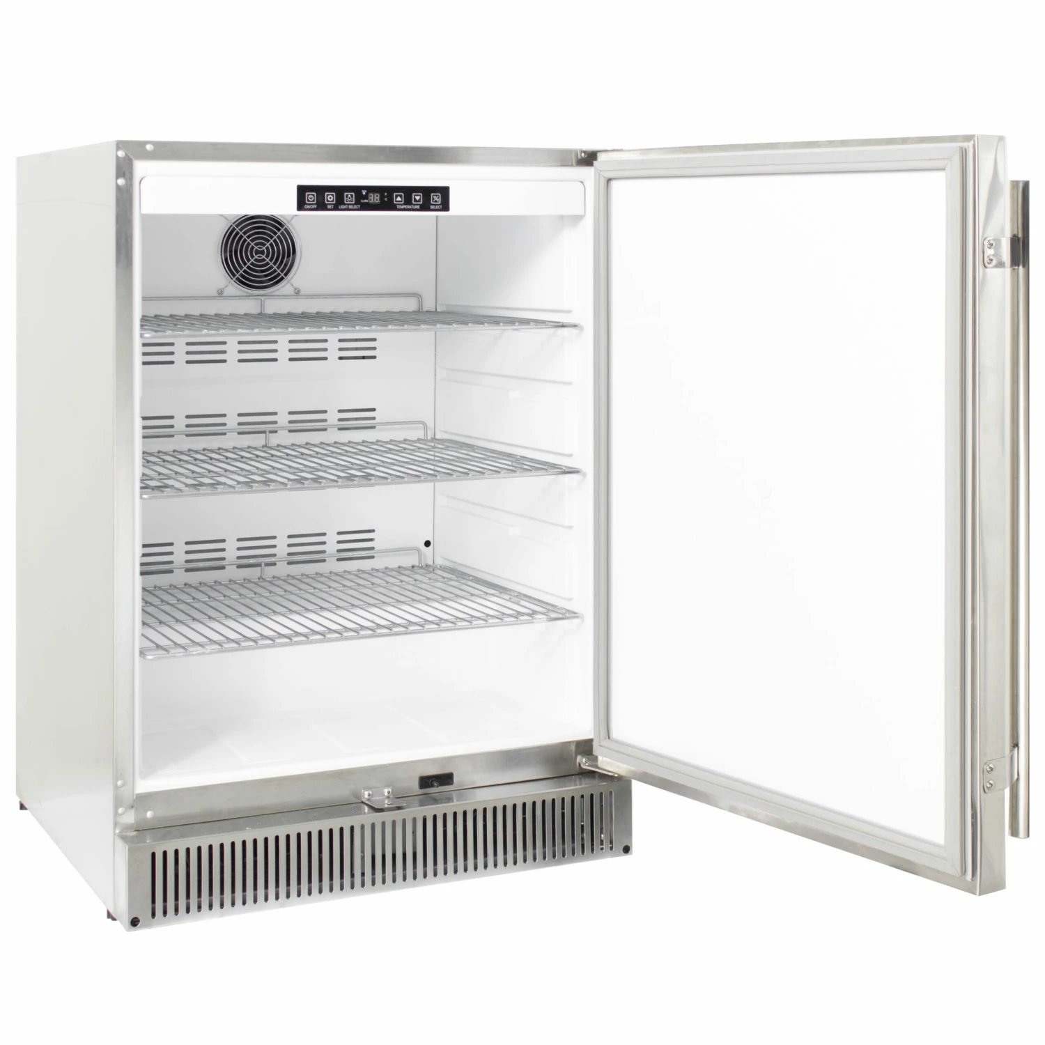 The Blaze 5.5 Outdoor Rated Compact Refrigerator is the ideal space saving solution for outdoor kitchens built into your island. Interior design offers plenty of shelf space for all your favorite refreshments and foods. The stylish stainless steel design pairs well with your other outdoor kitchen products. Requires 115 volts and 15 amps. The refrigerator, including the compressor, is warranted for 1 year to the original owner against defects in manufacturing and workmanship. This warranty extends to the original purchaser against manufacture defects for products purchased for ordinary single-family home use. Requires 115 volts and 15 Amps. Cut Out Dimensions: W 23 13/16 D 23 5/8 H 34 1/8