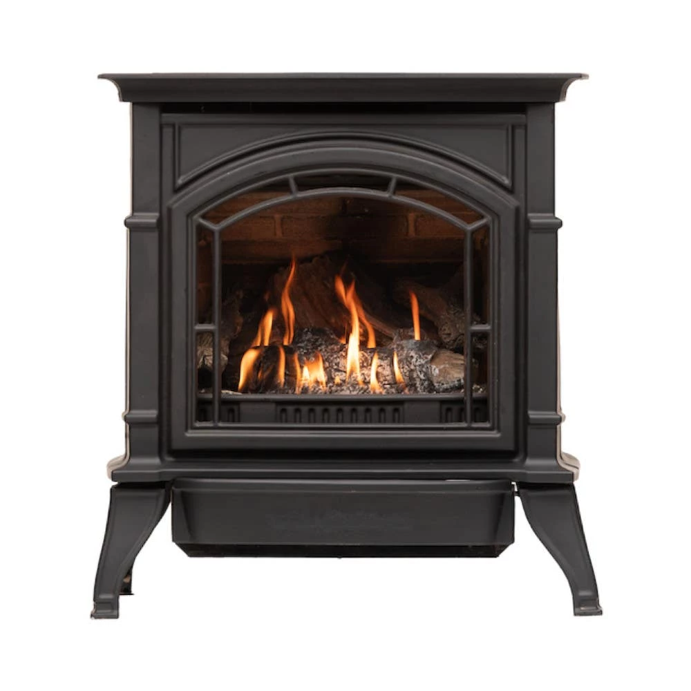 The Breckwell BH23 combines the beauty and durability of a cast iron wood stove with the flexible installation and convenience of gas. The solid cast iron fireplace on sturdy but graceful legs features a remote control standard and a large glass viewing area to maximize enjoyment. This stove can be hooked up to a standard millivolt thermostat for your convenience. Add beautiful warmth to any room in your home with this classic addition.