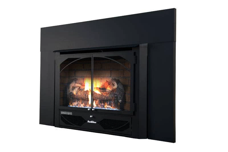 The 384 can be installed into an existing fireplace with a faceplate. The Buck Stove Model 384 Vent Free Gas insert provides 33,000 BTU’s and an included blower kit. Add a remote control for additional convenience.