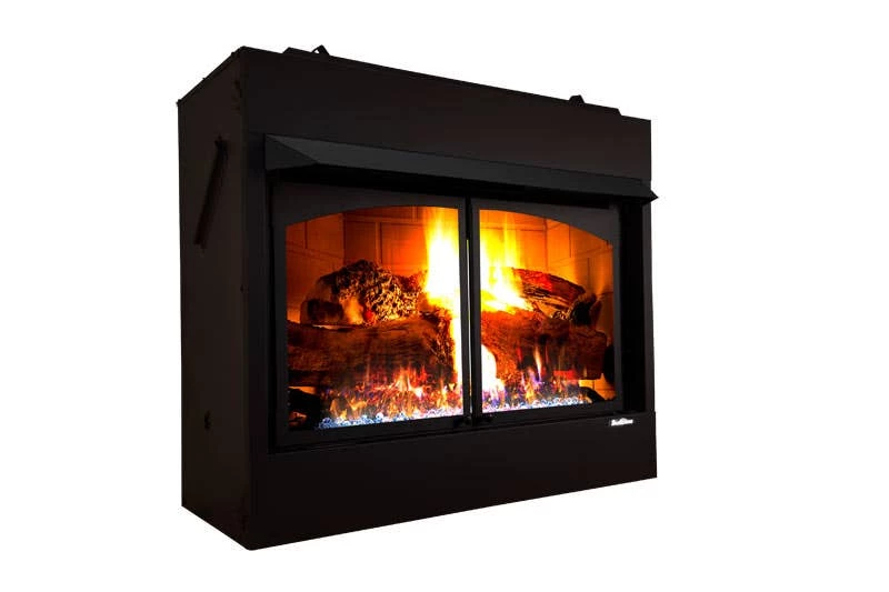 Model ZCBBXL 42″ zero clearance fireplace. This fireplace is intended to be installed into a wood framed cavity in new construction, remodel, or can be purchased with a mantel cabinet. The ZCBBXL produces 40,000 BTUs and burns 99.9% efficiently. This deluxe vent free fireplaces comes with Buck Stove’s Embervision Oak vent free liquid propane logs, an remote to turn the flames on and off, a heat activated – heat circulating blower kit, and mesh screen doors.