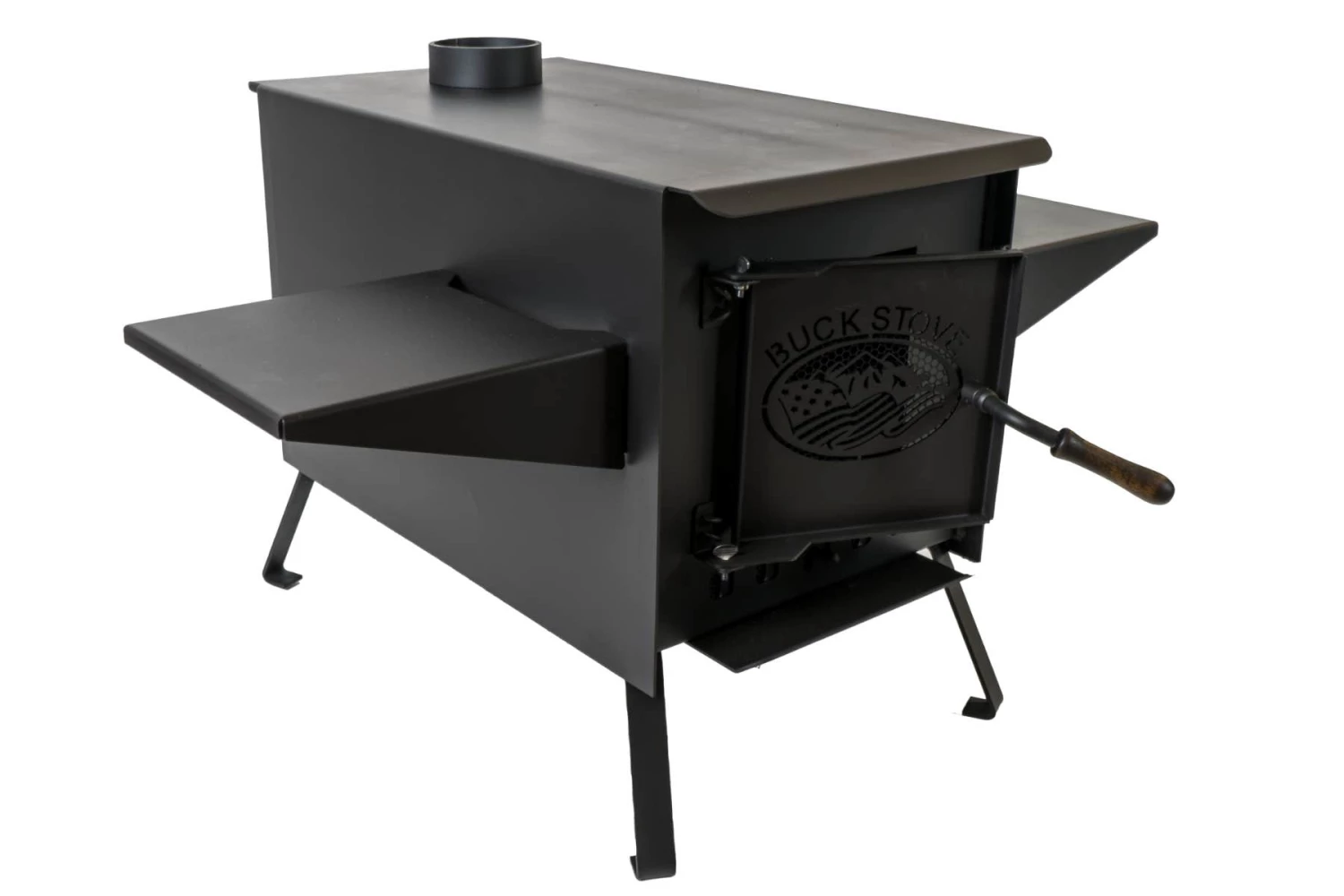 This American made quality stove is great for any outdoor adventure including tents, fishing shanty, or just enjoying the great outdoors. Stay warm while enjoying fresh cooked food from your Buck Camp Stove. Made from sturdy 11 gauge steel with rugged steel door and air intake adjustments for the control of fire you desire.