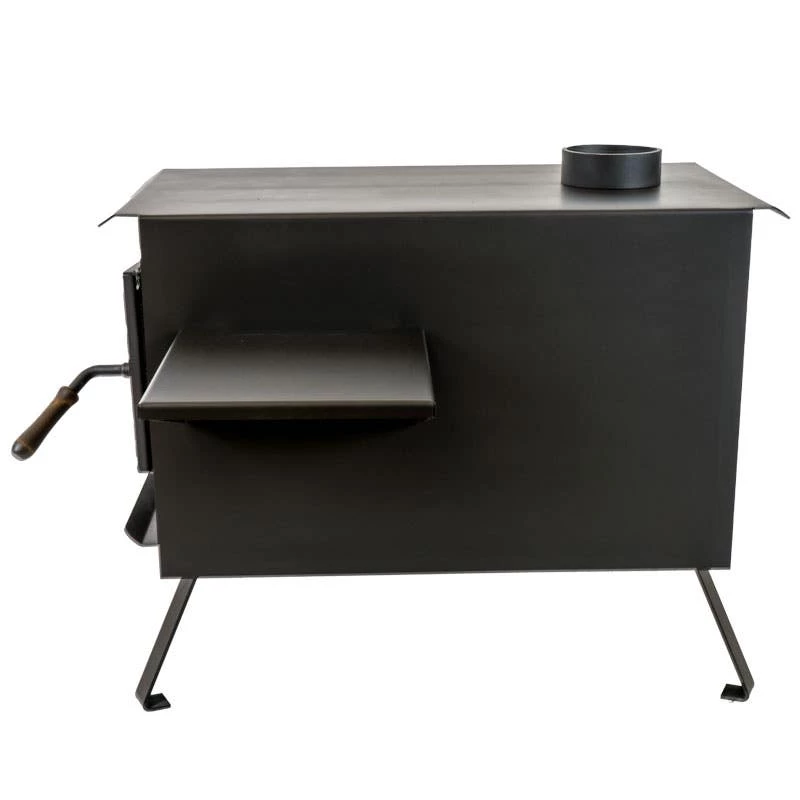 Each Buck Camp Stove has built in fire dogs and optional side shelves for the total camp stove package. Assembly takes just minutes and legs come off easily for storage inside the stove. Easy grasp handles for transporting