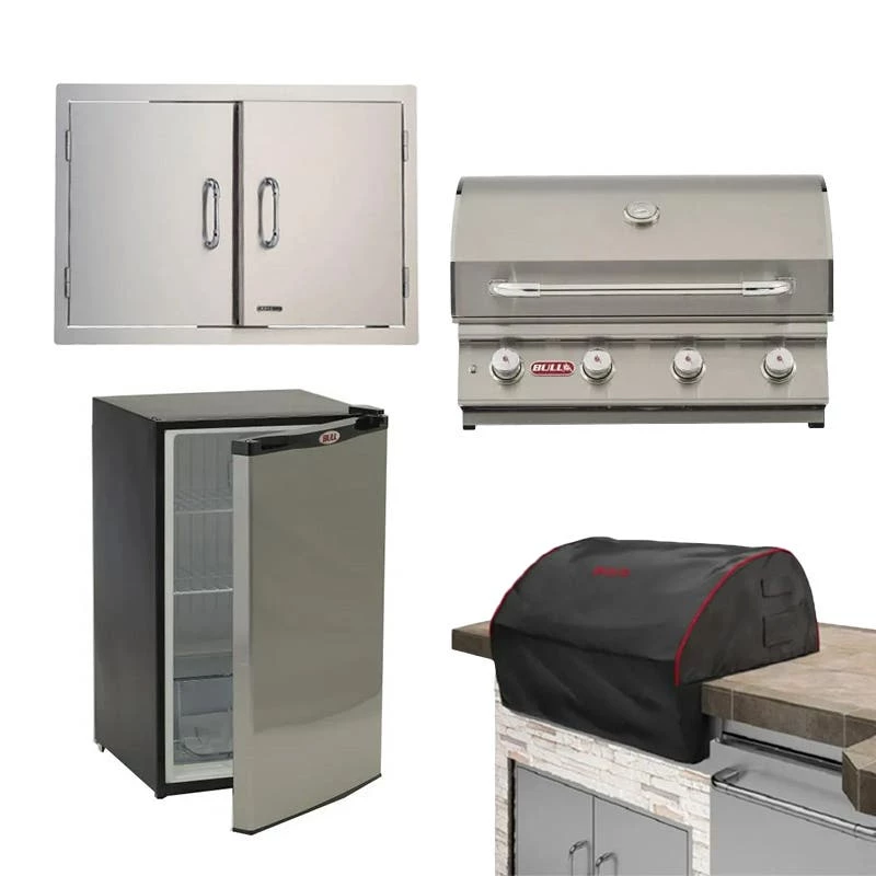 Since 1992 Bull BBQ Grills has been manufacturing quality barbecues and outdoor cooking equipment. Starting in a modest 1200 square foot facility Bull developed a business to provide its clients with a deliverable outdoor kitchen experience. Bull BBQ now operates globally out of multiple state-of-the-art facilities in the US, Europe, and Asia. Bull manufacturers portable stainless steel grills on wheels in both natural gas or propane. Bull offers outdoor kitchen components such as: outdoor storage doors and drawers, refrigeration, bar centers, sinks, as well as side burners. These components can be built into an island made on site. Bull also installs these components into factory made islands that are built in the USA out of steel framing covered in Hardie Backer Board. The island bodies are then finished with either stucco or stone. Counter tops are finished in tile. The grills are really where Bull really stands apart from other manufacturers. They have never lost sight of producing a grill that cooks well. This is proven by how many national awards and cooking competitions their grills have been featured in.