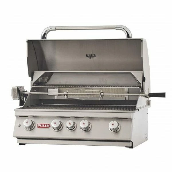 Included Items: Bull Angus 30-Inch built-In Grill, Infrared Back Burner, Stainless Steel Rotisserie, Twin Lighting System