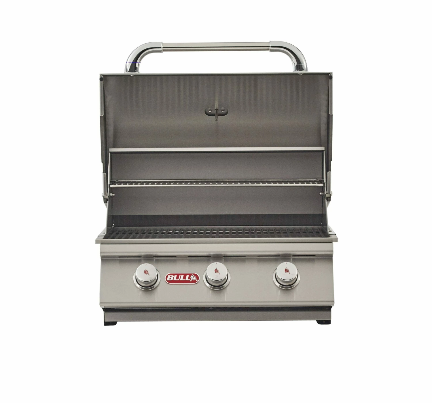 Steer Grill: The Bull Steer grill is a 3-Burner, 24-Inch gas grill. It does not feature interior lights or a rotisserie. It has welded stainless steel burners. Its 24-Inch size is ideal for larger families and smaller gatherings. It is backed by the same warranty as the Lonestar- Lifetime On Grates And Firebox, 5 years on the Burners