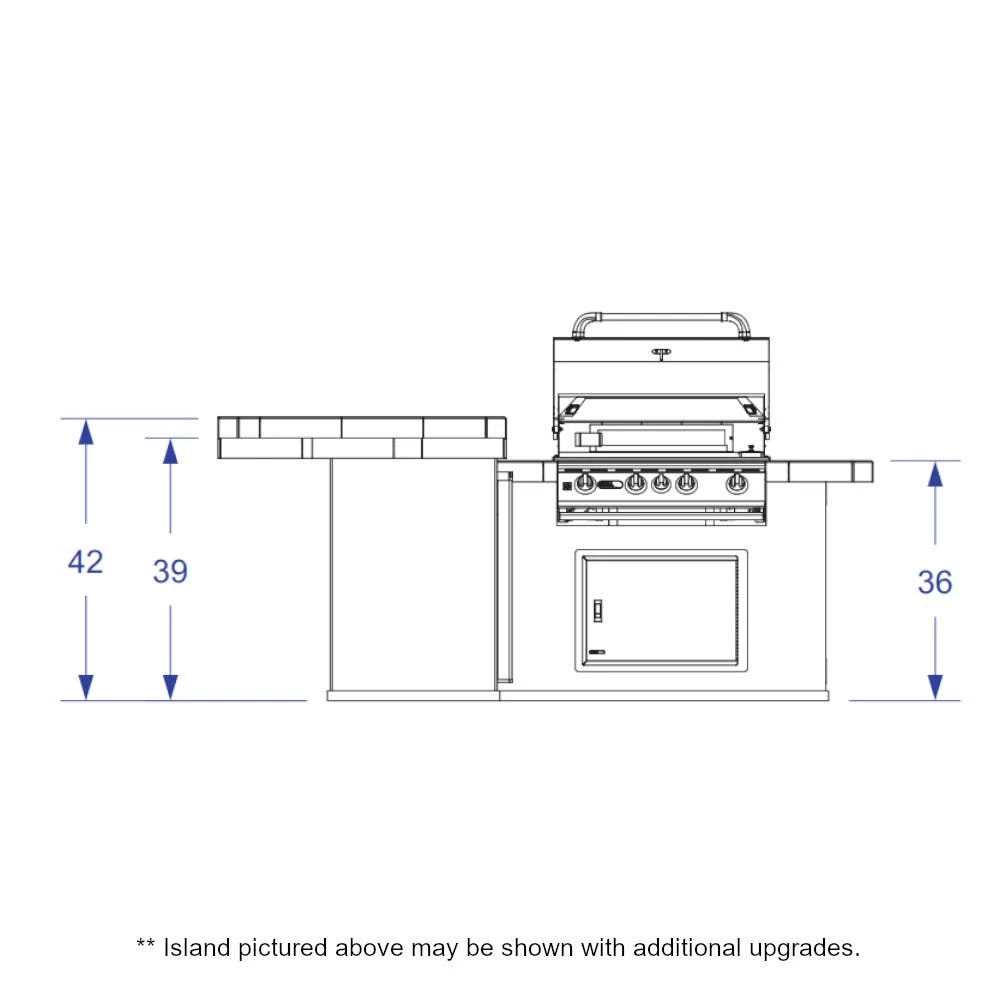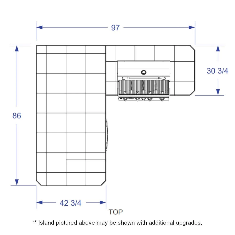 Grill Side: 97-Inch W x 30 3/4-Inch D x 36-Inch H