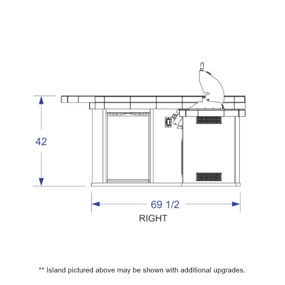Fridge Side: 86″ W x 42 3/4-Inch D x 39-Inch H - Grill Ignition Type: Push To Turn Piezo Ignition