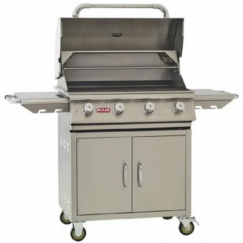 The Bull Lonestar cart model is a 4-Burner stainless steel gas barbecue. It has extra storage for a propane tank or other grilling accessories and its food prep areas on either side of the grill leave plenty of room to serve your favorite dishes..
