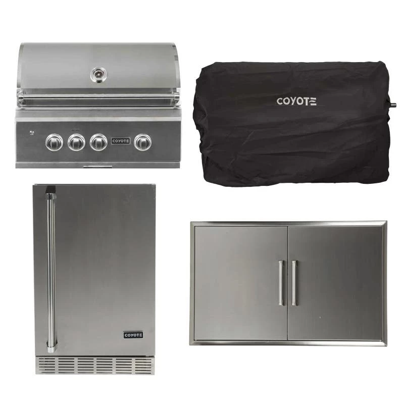 - Coyote S-Series 4 Burner Grill With Rotisserie Burner And Rotisserie Kit