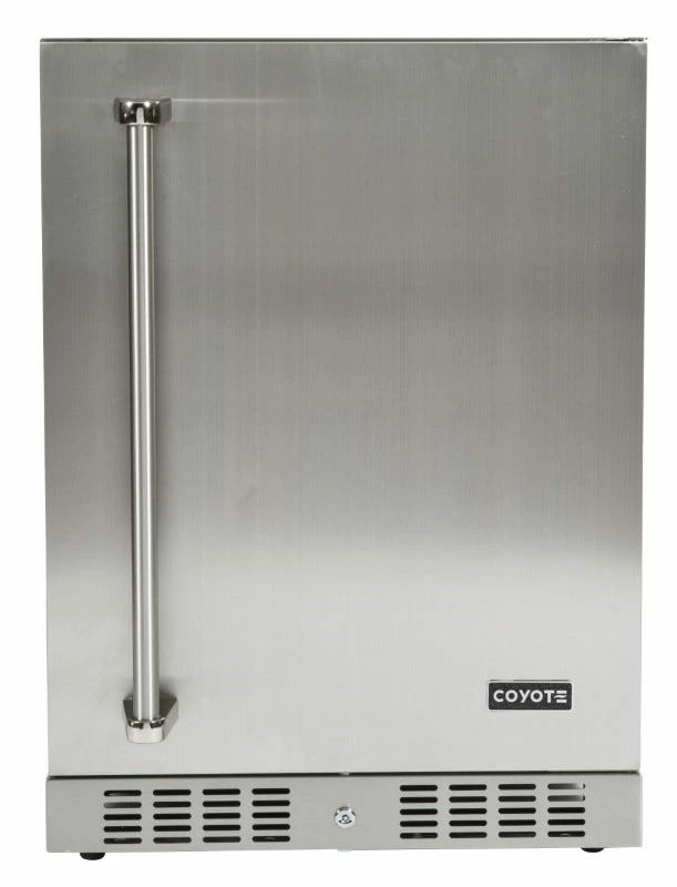 Complete your outdoor kitchen with an outdoor refrigerator. Store your favorite beverages, sauces, and sides. This refrigerator is an outdoor rated refrigerator vs. an under the counter refrigerator. Under the counter refrigerators are indoor refrigerators with a stainless front that have to be installed under a counter or in a vented grill island. Outdoor refrigerators are tested and approved to be used outdoors. The body of them is generally made of stainless steel. They can be used in colder outdoor temperatures. They are vented out the front to prevent overheating in a grill island. They have many advantages over a under the counter refrigerator.