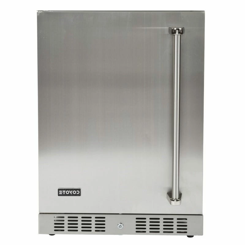 Complete your outdoor kitchen with an outdoor refrigerator. Store your favorite beverages, sauces, and sides. This refrigerator is an outdoor rated refrigerator vs. an under the counter refrigerator. Under the counter refrigerators are indoor refrigerators with a stainless front that have to be installed under a counter or in a vented grill island. Outdoor refrigerators are tested and approved to be used outdoors. The body of them is generally made of stainless steel. They can be used in colder outdoor temperatures. They are vented out the front to prevent overheating in a grill island. They have many advantages over a under the counter refrigerator.