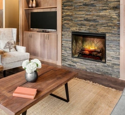 Dimplex Revillusionรยฎ Fireplaces are a completely new way of looking at fireplaces, and changing the standard for electric flame display. A clear view through the lifelike flames, to the full brick interior, captures the charm of a wood-burning fireplace. Enjoy the look of a fireplace cut straight from the pages of a magazine by choosing a Revillusionรยฎ fireplace. Dimplex Revillusionรยฎ, clearly a better fireplace.