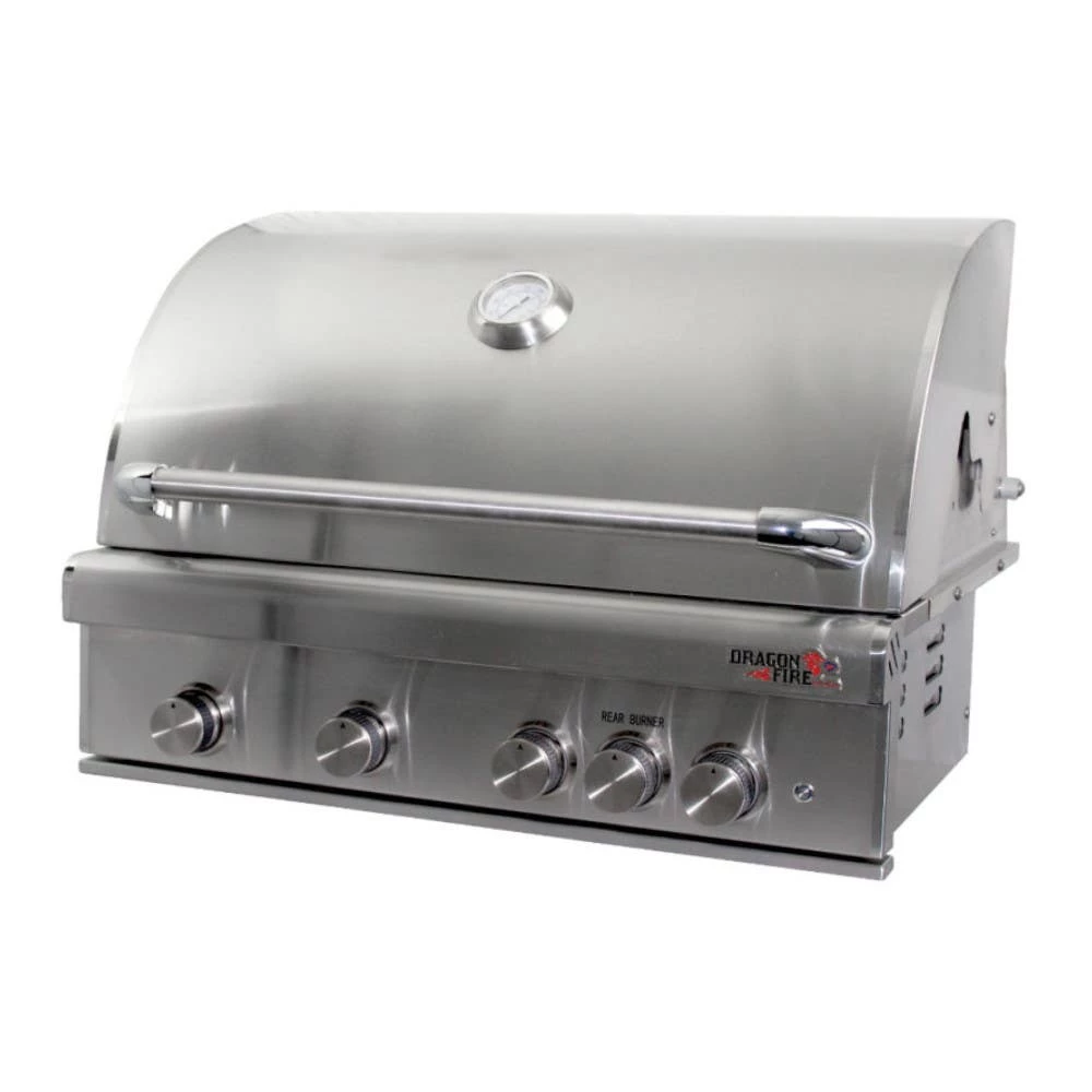 The 32″ Dragon Fire grill hits the sweet spot for those looking to throw a party or just cooking a mid-week burger. 4 burners are perfect for both direct and indirect cooking. All 304 grade commercial stainless steel construction ensures this grill is going to last a lifetime. The lifetime warranty on all stainless components backs that up. Complete your outdoor kitchen centerpiece with a rotisserie kit, a cover, or one of the many outdoor accessories from Dragon Fire.