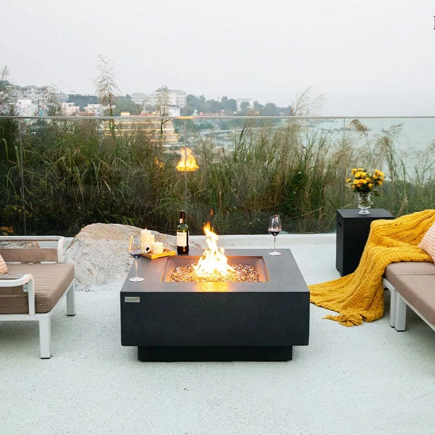 The Bergen is a fresh and enhanced addition to the Elementi Plus lineup, offering a square fire table design. It’s meticulously handcrafted with glass-fiber reinforced concrete, striking a balance between lightweight construction and resilience against various weather conditions. The burner, made from robust 16-gauge 304 stainless steel, delivers an impressive 60,000 BTU output, providing cozy warmth that extends across your patio or deck. The Bergen comes in a striking dark grey color, sure to capture your guests’ attention.