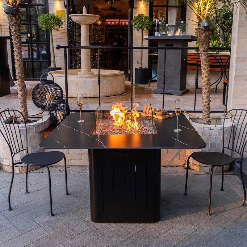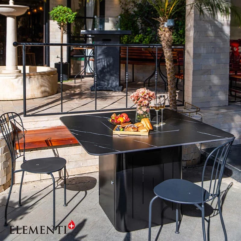 Elevate your outdoor dining experience with the Elementi Plus Brugge Marble Porcelain Dining Table. Crafted from durable materials, this fire table adds sophistication to your outdoor space and offers long-lasting performance. Its powerful 16-gauge, 304 stainless steel burner delivers a clean, smokeless flame with a maximum output of 60,000 BTUs. The table includes a porcelain lid for protection and extra dining space, along with a windscreen for stability on windy days. The Caribbean blue fire glass enhances its visual appeal, allowing you to make a statement and create memorable al fresco dining moments.