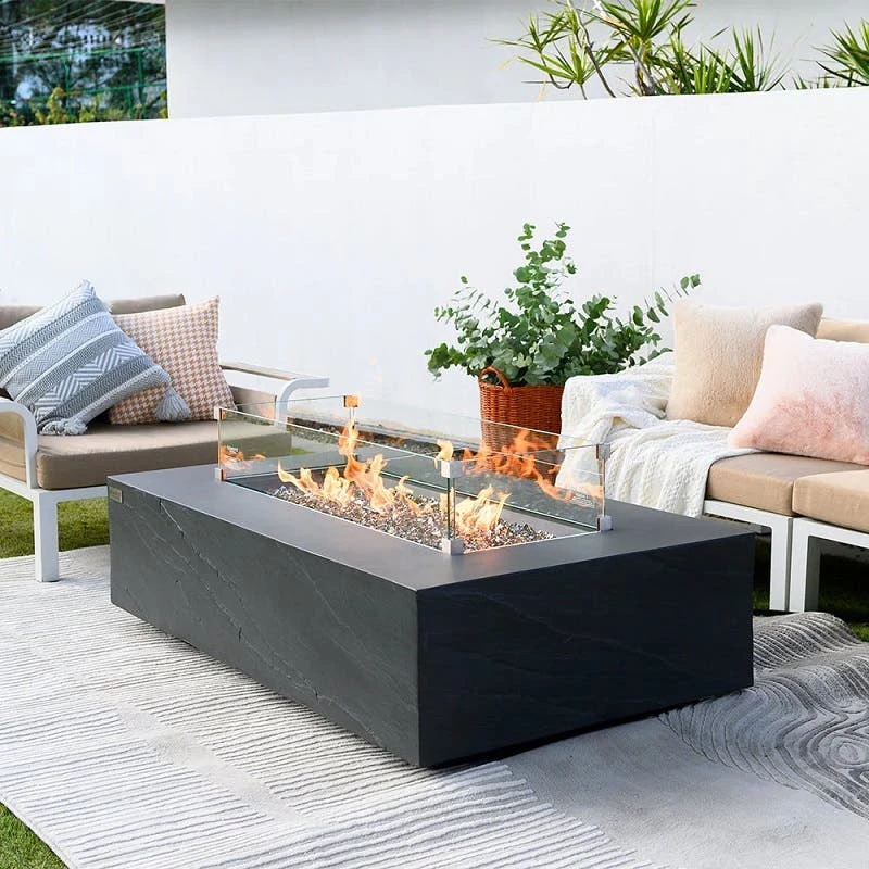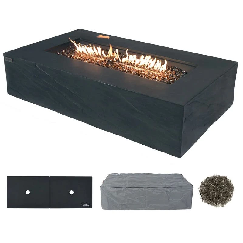The Cape Town is a newly improved rectangular fire table, proudly featured within the Elementi Plus line. This meticulously crafted unit boasts a body constructed with lightweight yet durable glass-fiber reinforced concrete, ensuring its resilience against various elements. The burner, made from robust 16-gauge 304 stainless steel, offers an impressive BTU output of 60,000, radiating warmth across your patio or deck. The Cape Town is exclusively available in a sleek slate black color, an exclusive feature of the Elementi Plus line.