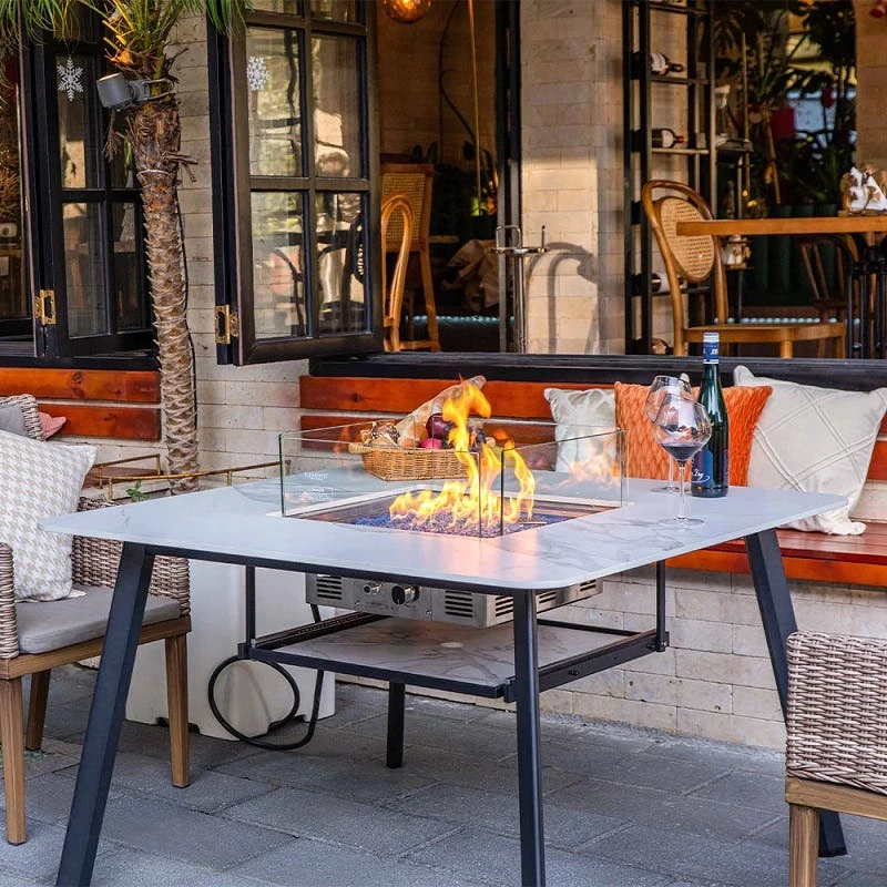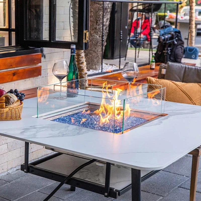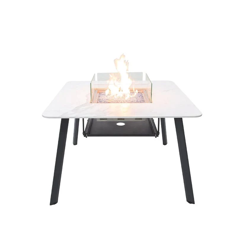 Enhance your outdoor dining experience with the Elementi Plus Helsinki Marble Porcelain Dining Table, a fusion of warmth, style, and long-lasting durability. The table features a robust 60,000 BTU burner crafted from 16-gauge, 304 stainless steel, ensuring enduring performance and generating a pristine, smokeless flame. It’s effortlessly ignited with the push-button spark ignition system, making it a breeze to use. The porcelain lid serves as an expansion of the dining area, making it perfect for gatherings and celebrations. With the inclusion of Fire Glass Caribbean Blue, the table introduces a captivating play of colors, elevating the visual spectacle of the dancing flame. Furthermore, a windscreen is provided, ensuring that even on breezier evenings, your outdoor gatherings remain undisturbed, creating memorable moments with friends and family.