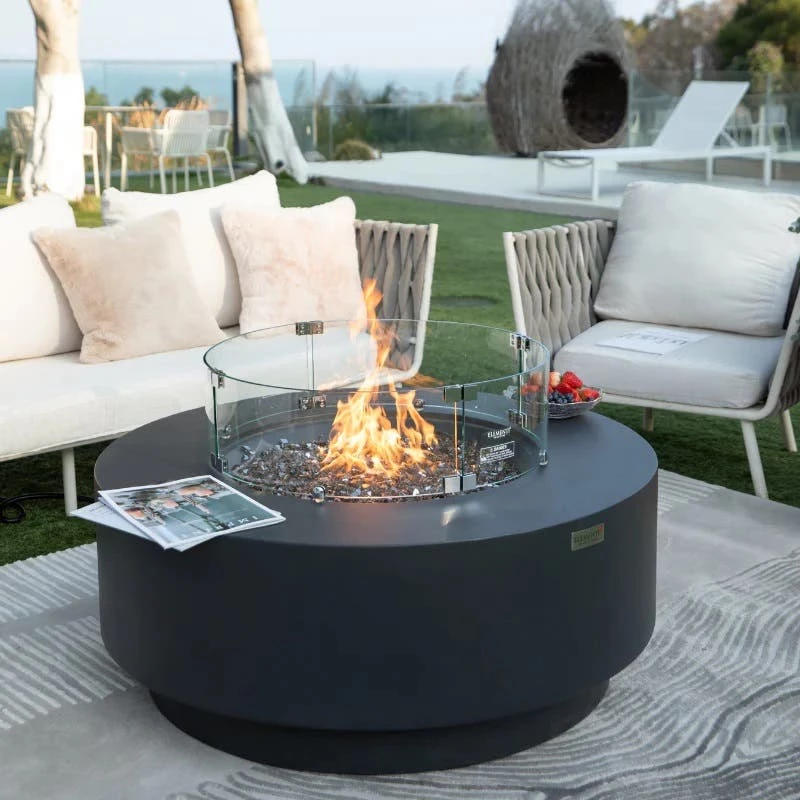 The Nimes is an exciting addition to the Elementi Plus line, featuring a new and improved round fire table. Crafted with precision, the body is made of lightweight yet durable glass-fiber reinforced concrete, making it resilient against the elements. The burner, constructed from robust 16-gauge 304 stainless steel, offers an impressive 60,000 BTU output, ensuring the warmth of the flames envelops your patio or deck. The Nimes arrives in a familiar and elegant dark grey color, a signature seen in the Elementi and Modeno lines. These firepits introduce a streamlined and modern aesthetic to the timeless outdoor fire, providing a warm and inviting centerpiece for relaxation regardless of the season.