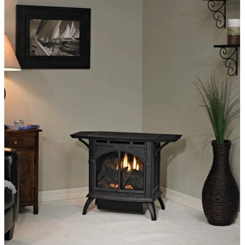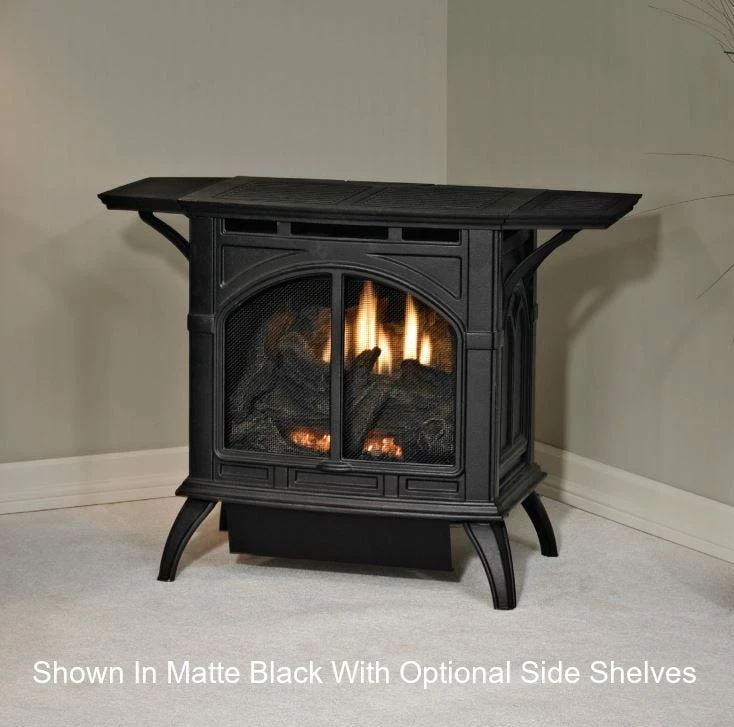 Vent-free Empire Cast Iron Stoves come standard with Empire’s Contour burner system. The Contour Burner features precision-port technology to produce vibrant flames. Topped off with the hand-painted ceramic fiber log set and glowing embers, the effect is as realistic as a gas-fired stove gets – guaranteed to keep you and your guests mesmerized for hours. Vent-free technology eliminates the need for venting, which greatly simplifies installation. This special 10,000-Btu model is ideal for bedroom applications – where allowed by code.