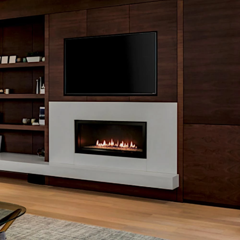 Empire’s Boulevard 36 fireplaces ship with a multi-function thermostat remote control that operates the variable burner, optional accent lighting, and optional blower. The bright back-lit LCD screen uses simple graphics to guide you through set-up and operation. Every Boulevard includes an electronic intermittent ignition system that eliminates the standing pilot to help you save energy and money.