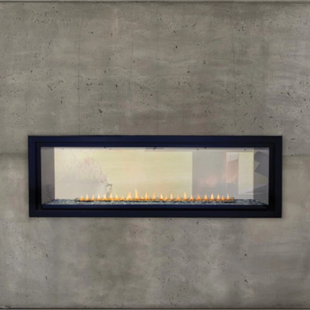 The 48 Inch See-Through Empire Boulevard ventless fireplaces feature a 32,000 BTU burner with attractive dancing flames. Operating at 99.9% efficient, the fireplace will add both ambiance and warmth.