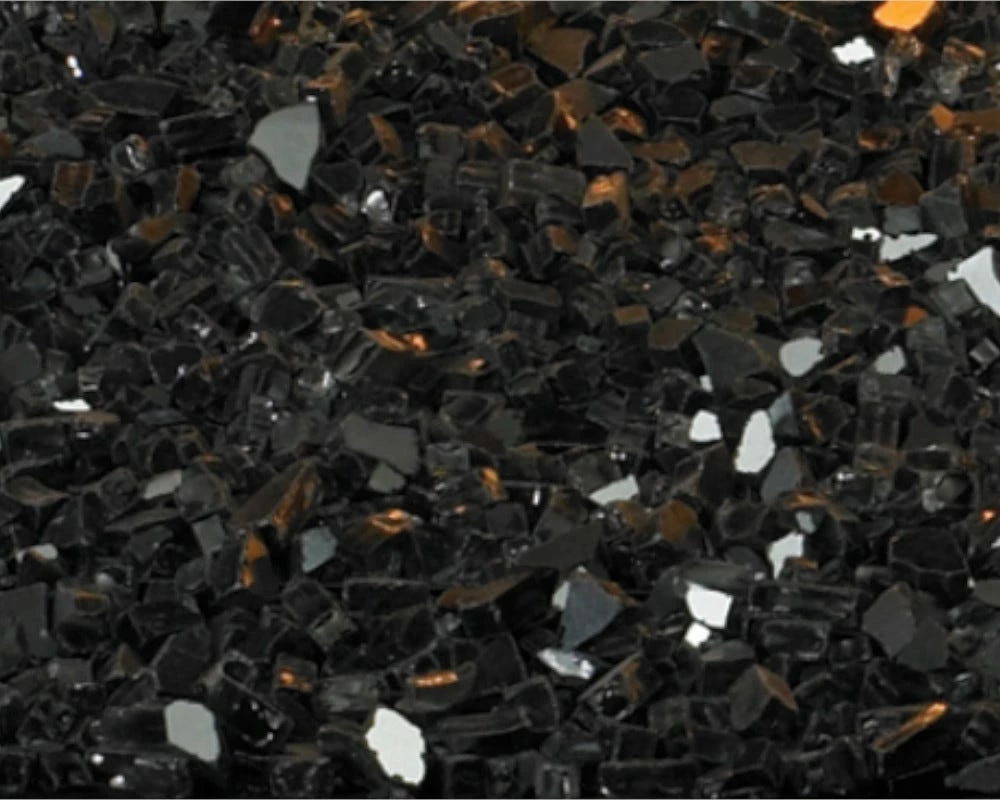 Black Crushed Glass- Covers Approx 1 SQ FT. Enough glass to cover 8 sq. ft. is required – 8 bags maximum.