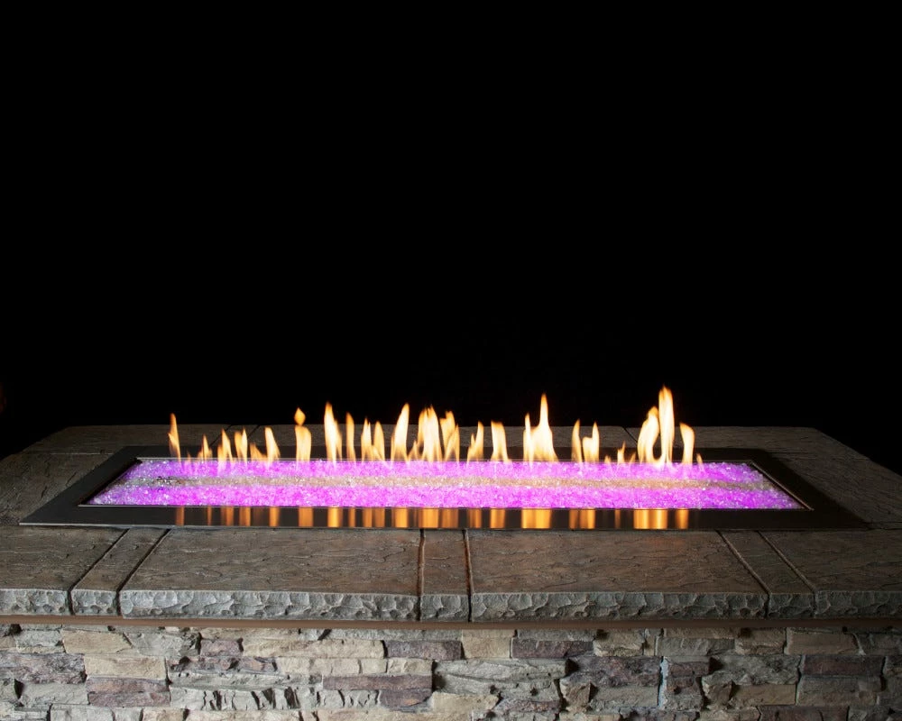The Empire Carol Rose line of linear fire pit burners will captivate you with their mesmerizing flames. Constructed of stainless steel and designed to impress. Available in 48″ and 60″ lengths. Each size available with or with out LED lights. The LED lights are below the fire glass and will brilliantly illuminate the glass in different color options to match the mood of your evening. Each fire pit utilizes a push button flame sensing ignition system that will shut the gas off should the flames blow out. Make this stylish and safe fire pit burner the center piece of your outdoor living space.