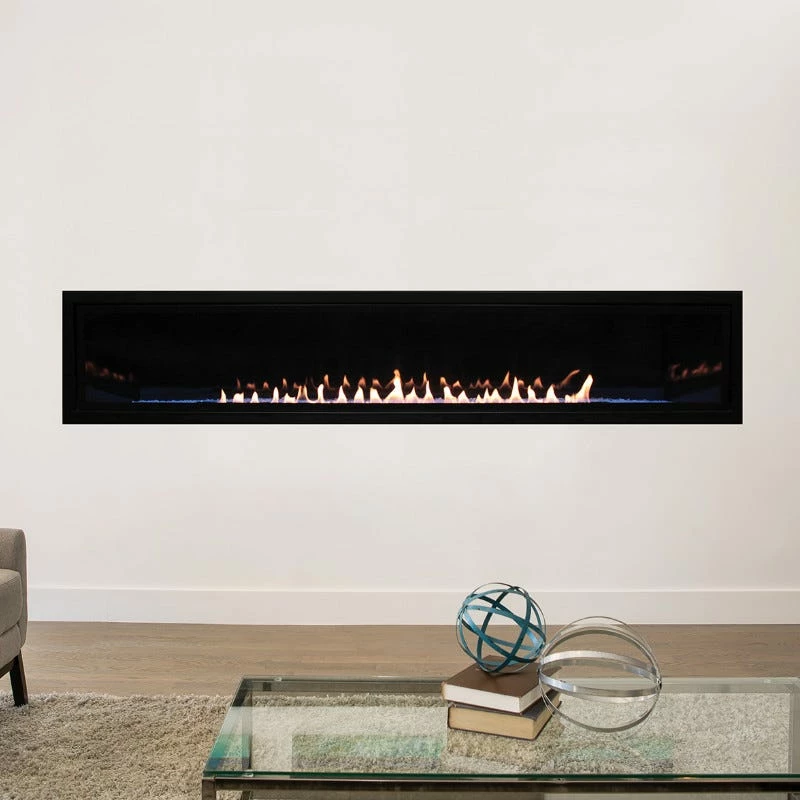 The Empire 72-Inch Boulevard Vent-Free Linear Fireplace features a 40,000 BTU pilotless electronic ignition system. This saves in operational costs by not having a pilot light continually running. Operating at 99.9% efficient, the fireplace will add both ambiance and warmth.