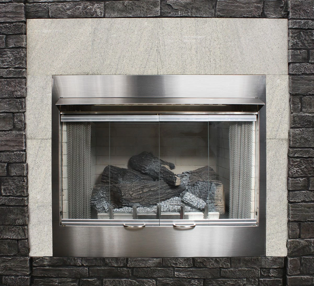 Protect your fireplace with the available bi-fold glass doors. To be used with Empire Harmony gas logs and Empire Loft burner kits. The bi-fold glass doors are not to be used while the fireplace is operating.