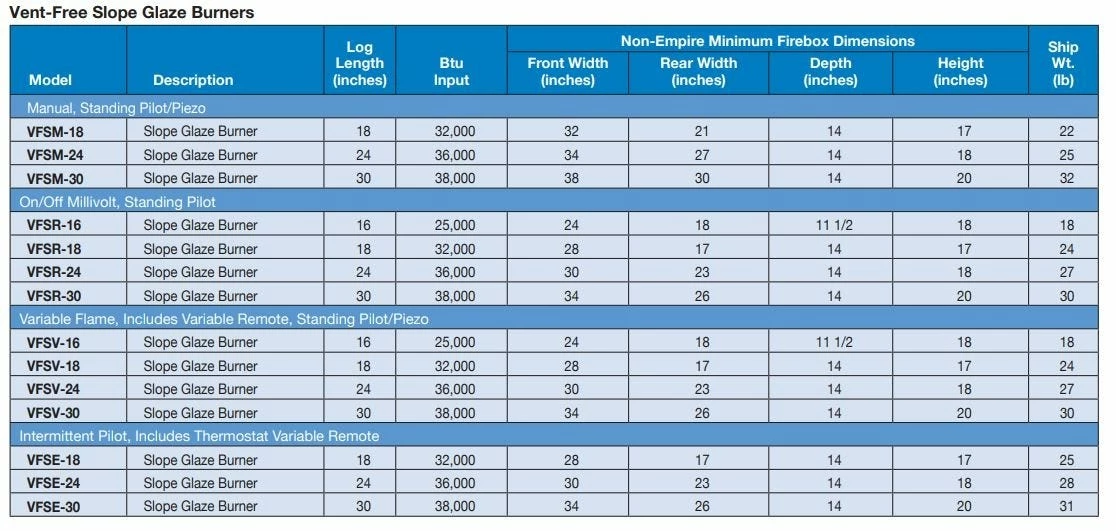 - Intermittent Pilot – This valve system gives the user complete control of the logset with the included remote. The included remote features a thermostat, up and down flame adjustment, and on/off control. The pilot light on this system only comes on when the log set is on.