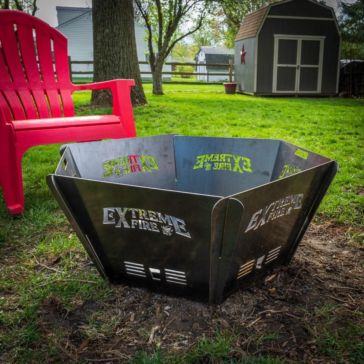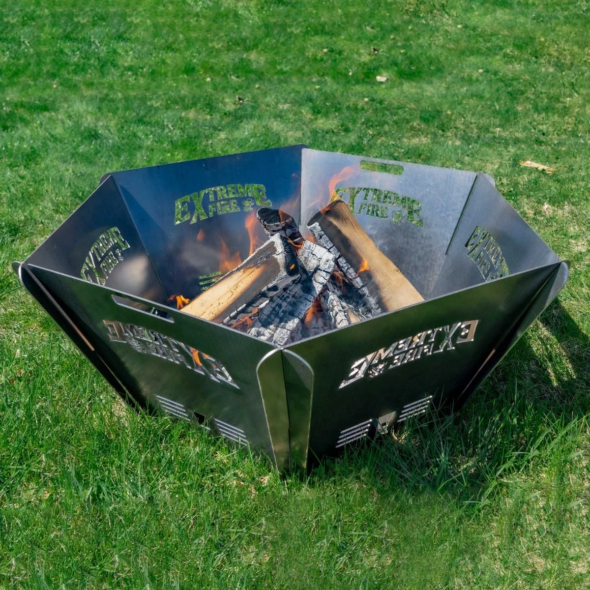 A full-size fire pit for home or on the go! The Big 6 firepit from Extreme Fire is our most popular pit due to its size and versatility. Spanning just over 2 feet wide, the Big 6 features an 18â base that lets you have a huge fire just about anywhere because you donât have to worry about cleanup or ground preparation.