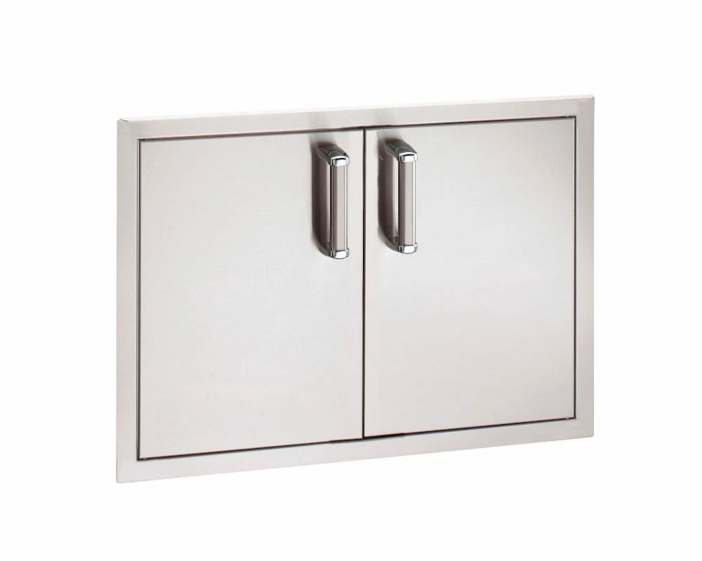 Flush Mounted Doors and Drawers Featuring heavy-duty handles with cast stainless steel mounts, these 304 stainless steel doors and drawers are designed to close flush with the frame using a strong magnetic latch. Flush Mounted Doors and Drawers are filled with polyurethane foam for insulation and a solid feel. A continuous rain guard protects from water getting into your custom enclosure. Available in a variation of door and drawer configurations and sizes. With so many options there is a combination available to meet any outdoor kitchen storage need. New Pantry sealed and gasketed Door/Drawer combos feature self-closing, magnetic seal drawers.
