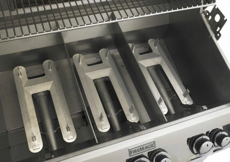 Proudly made in the USA, the Fire Magic Echelon Diamond series is the absolute pinnacle of cooking excellence. The structure, cooking grids, heat distribution plates, hood, and burners, are all made from high-quality 304-grade stainless steel. Included standard features like a rotisserie with an infrared rear rotisserie burner, a charcoal/smoker basket, heat zone separators, and heavy-duty cast stainless steel burners make this a complete outdoor cooking machine. Cook a hen or small turnkey on the rotisserie. The 1/4″ thick cast stainless steel burners can cook as low as 200 degrees while still getting more than hot enough to put a proper sear on a steak. The heat zone separators allow you to cook multiple foods at once. Separating the burner cooking a juicy porterhouse from the burner more slowly cooking some marinated chicken breasts. The charcoal smoker basket allows you to infuse your food with natural smoke flavor. The 16GA heat distribution plates prevent flare-ups while creating smoke to add to the flavor of your meal. Since 1937, Fire Magic has been advancing the art of outdoor cooking.