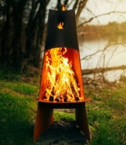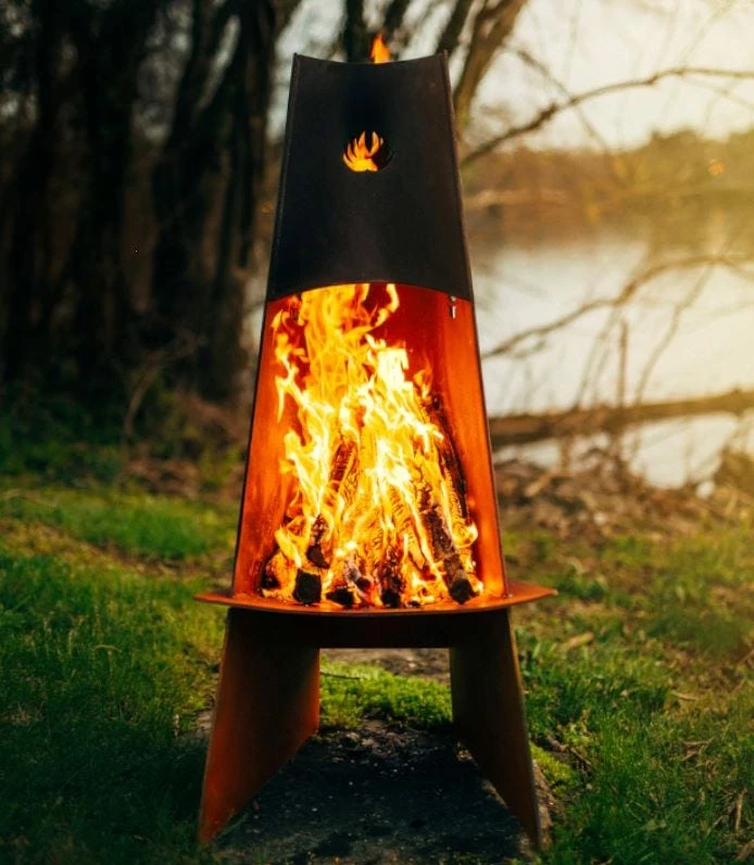 Vesuvius channels smoke and fire up the flue to the sky above. Our trilateral design protects the fire from wind and lessens the spread of sparks and embers.