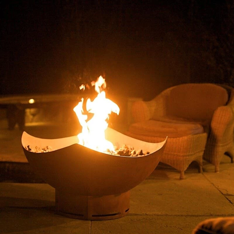 The 36-inch Manta Ray wood burning fire pit is made of heavy-duty construction designed for wood burning purposes to provide a beautiful centerpiece for your outdoor space.