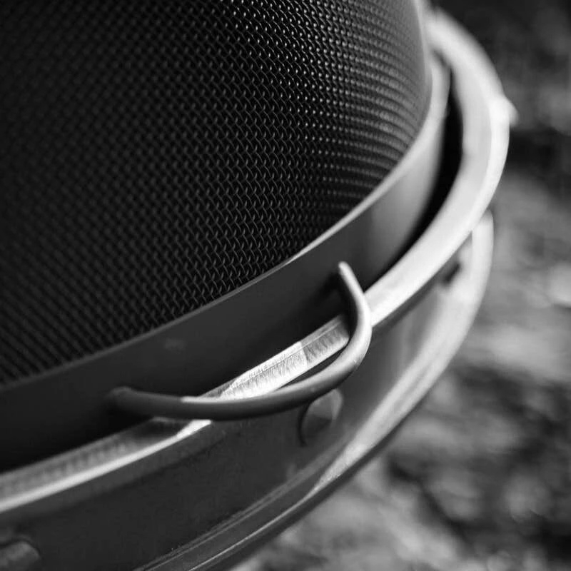 Our spark guards are handcrafted from heavy stainless steel mesh and two inch wide 304 stainless steel bands, then painted with black high temperature paint.