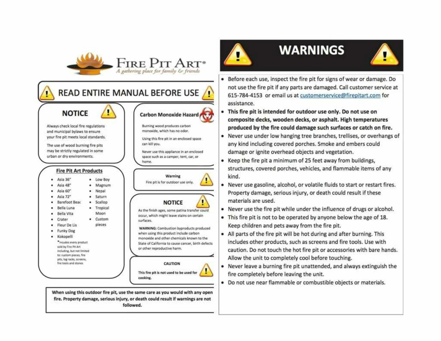 | Resources | Fire Pit Art Manual and Warning You will need Adobe® Acrobat® Reader to view PDF documents |
