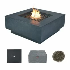 Elementi Plus Athens Rectangular Marble Fire Pit Table – OFP102BW