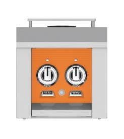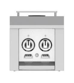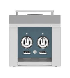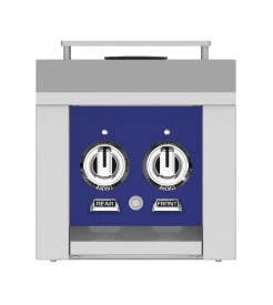 5/16-inch diamondcut stainless steel grate provides superior heat distribution and durability. LED control panel lighting for added visibility when cooking and entertaining at night. Made in the USA welded body stainless steel construction provides long lasting durability. Recessed marquise panels perfectly match your Hestan grills. This double side burner features the many Hestan signature color finishes.