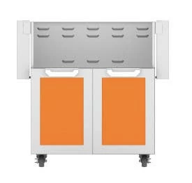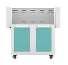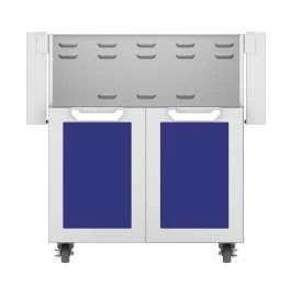 Made in the USA for quality craftsmanship and long lasting durability. Designed for use with Hestan 30-inch gas grills. Fold down side shelves provide valuable workspace. Slide-out tank tray easily converts to trash storage for added versatility. Marquise accented stainless steel panels in many signature finishes.