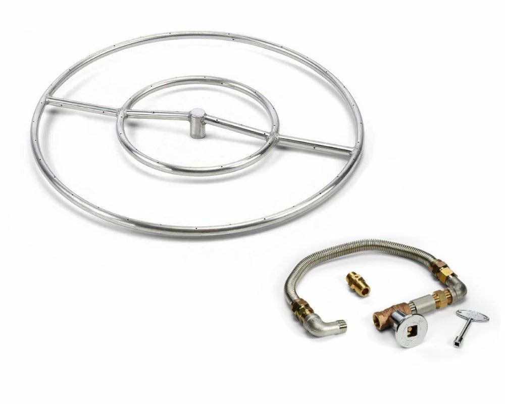 These fire pit kits include the burner element, a gas flex line connection to the key valve, the key valve, a key for the key valve, and various gas fittings.