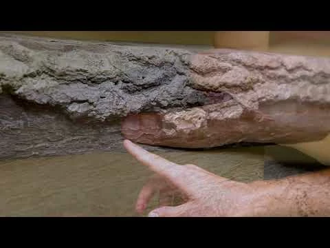 Our Half-Round Sleeper mantel is molded directly from a 8” x 6” beam which features a pine bark texture, rough-hewn tool marks, insect damage, checks & splits, and character knots.