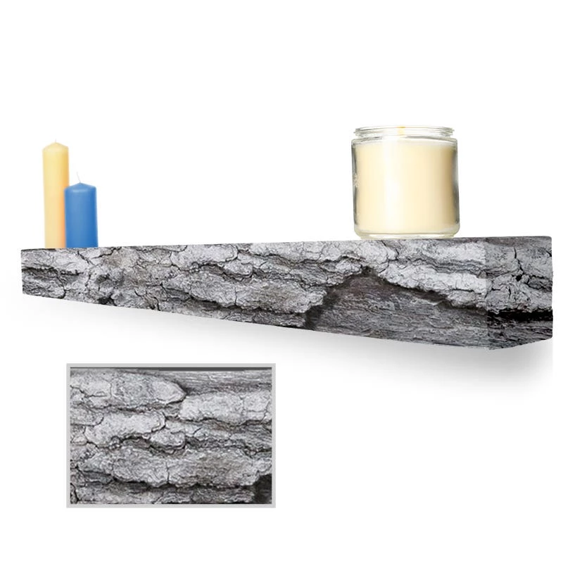 Our Half-Round Sleeper mantel is molded directly from a 8â x 6â beam which features a pine bark texture, rough-hewn tool marks, insect damage, checks & splits, and character knots.