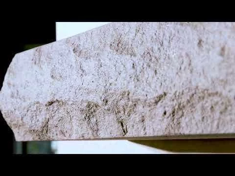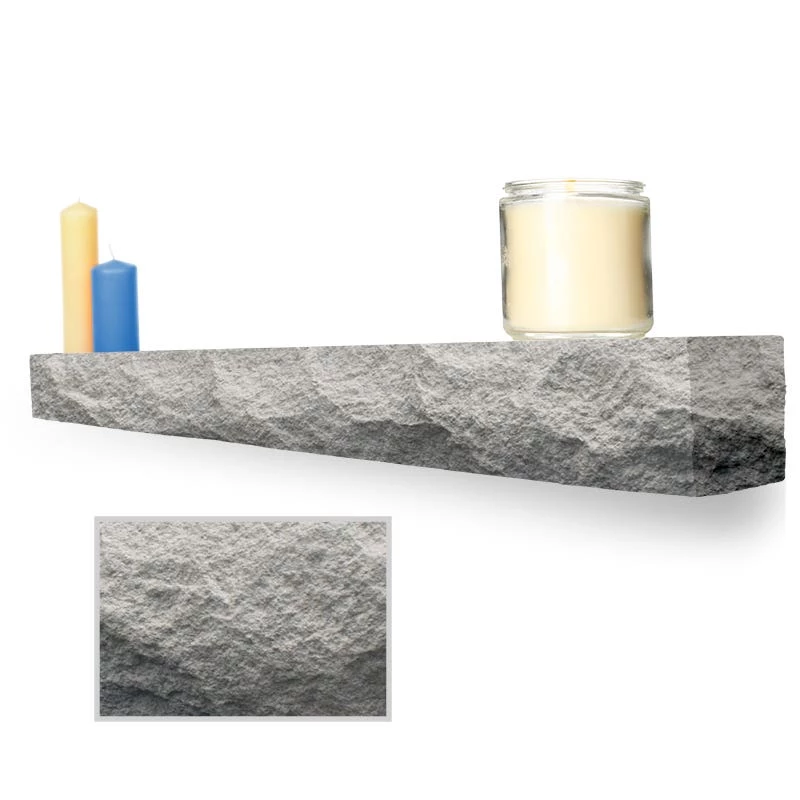 Our Limestone mantel comes from a local quarry and is finished with a chiseled edge on the face and sides before we make a mold. The top and bottom are smooth with a cross-section of 8â deep by 4.75â high. With smooth lines and a light color pallet, these mantels fit well into virtually any decorating theme. The rough chiseled edge is speckled with mica to add a tasteful dose of bling that sparkles in the light.